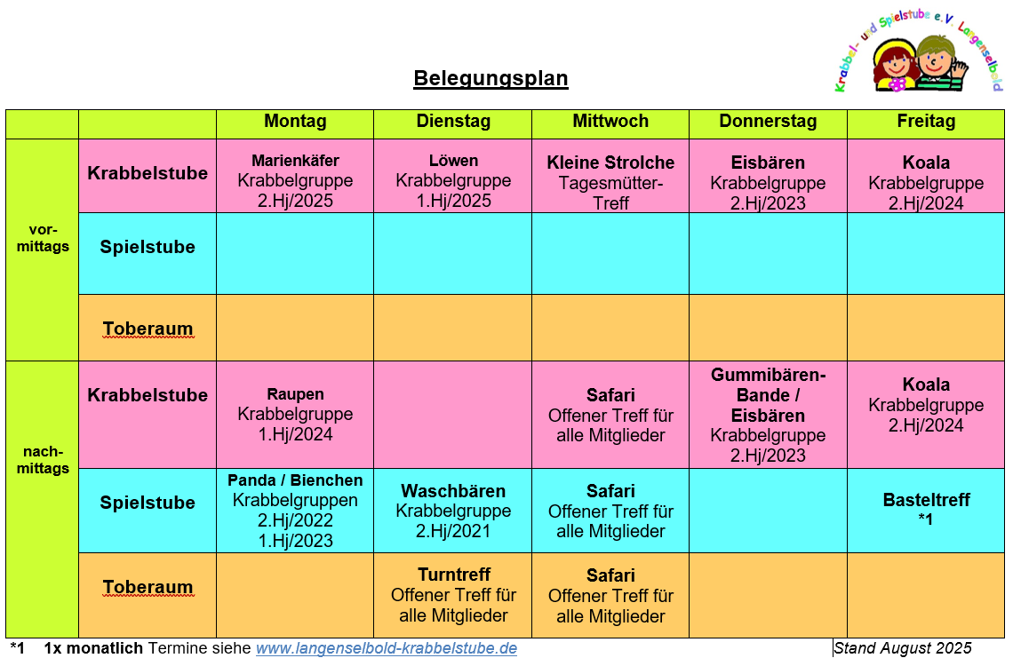 Die Krabbelgruppen richten sich nach den Geburtstagen bzw. Geburtshalbjahren der Kinder!