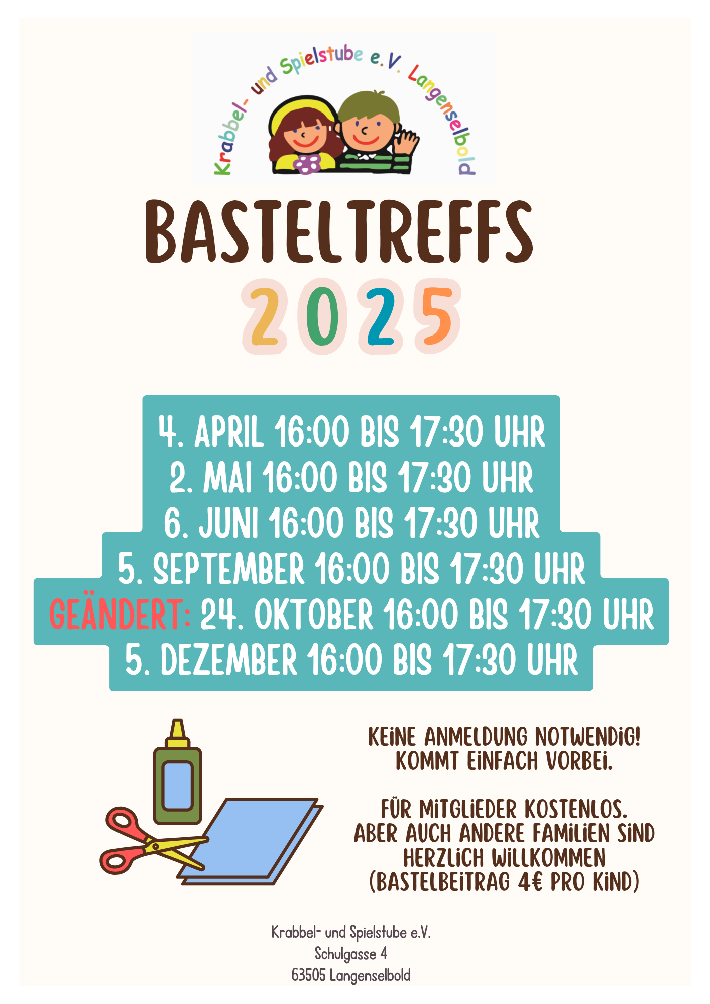 Der geplante Basteltreff am 07.11.2025 muss auf den 24.10.2025 verschoben werden.